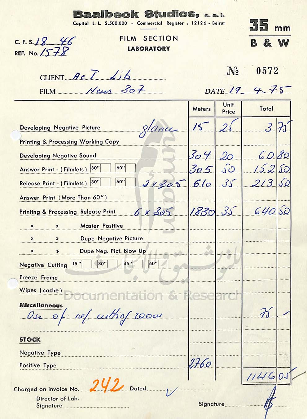 ● ملفّات إدارية تعود إلى ستينيّات وأوائل سبعينيّات القرن المنصرم، وتتضمّن عددًا كبيرًا من المجلّدات، بعضها يتعلَّق بالمحاسبة والمسائل الماليّة، وبعضها بمورِدي ستوديو بعلبك؛ كما تتضمّن مجلّدات مخصّصة لأفلام ١٦ و٣٥ مم، وأخرى لمختبرات فراناي تيراج سينماتوغرافيك (Laboratoires Franay Tirages Cinématographiques LTC) في سان كلو في فرنسا.
