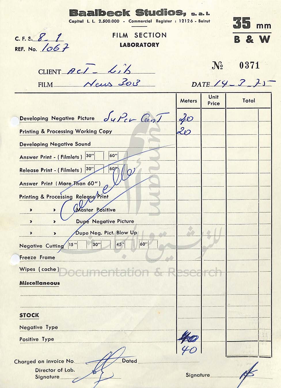 عملنا بالشراكة مع معهد أرسنال ـ معهد فنون الأفلام والفيديو في برلين ـ، على مشروع رقمنةِ شرائط الأفلام والملفّات الورقيّة، بهدف إتاحة هذه الموادّ لأغراض البحث مستقبلًا. وهو مشروع شامل حصل على تمويلٍ من برنامج التراث الثقافيّ التابع لوزارة الخارجية الألمانية في عامَي ٢٠٢٢ و٢٠٢٣.